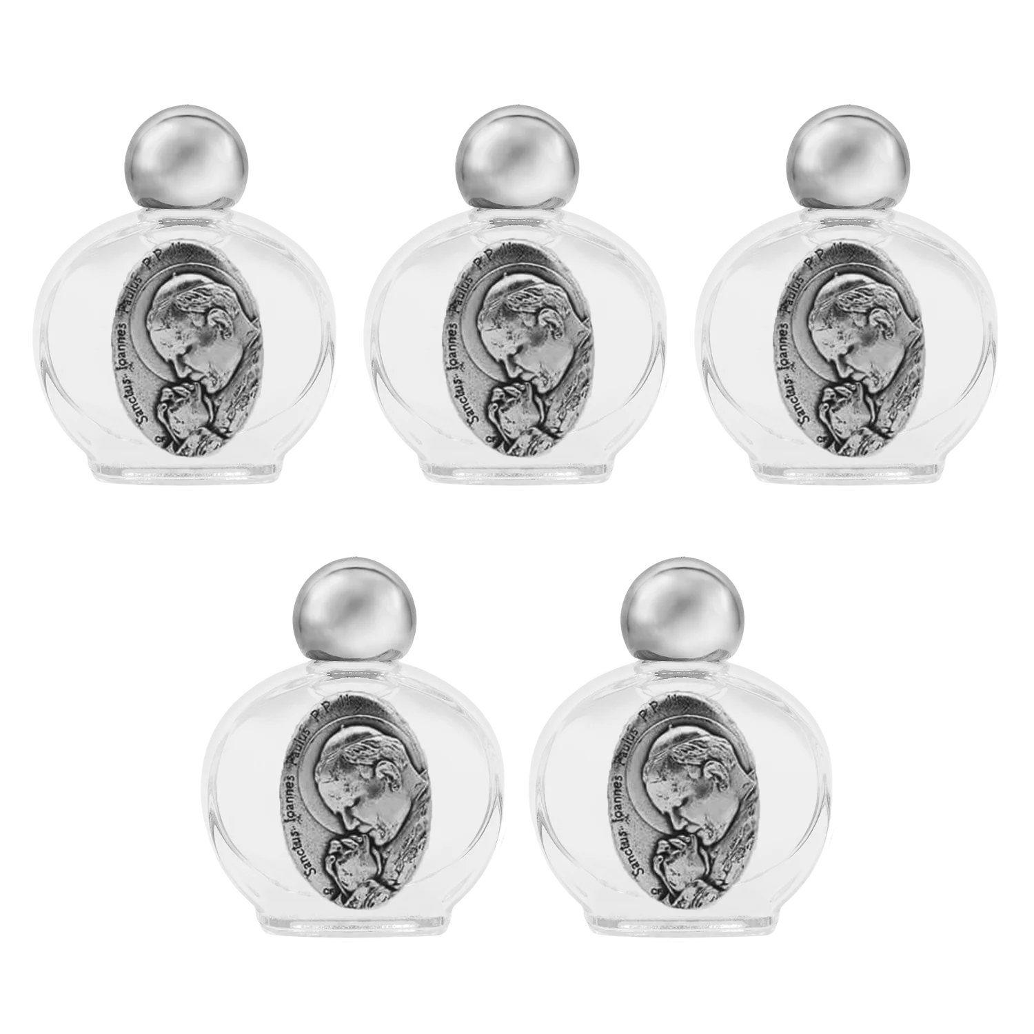 Set of 10 ml glass bottles with metal foil depicting Pope John Paul II, available in sets of 3 or 5 pieces.